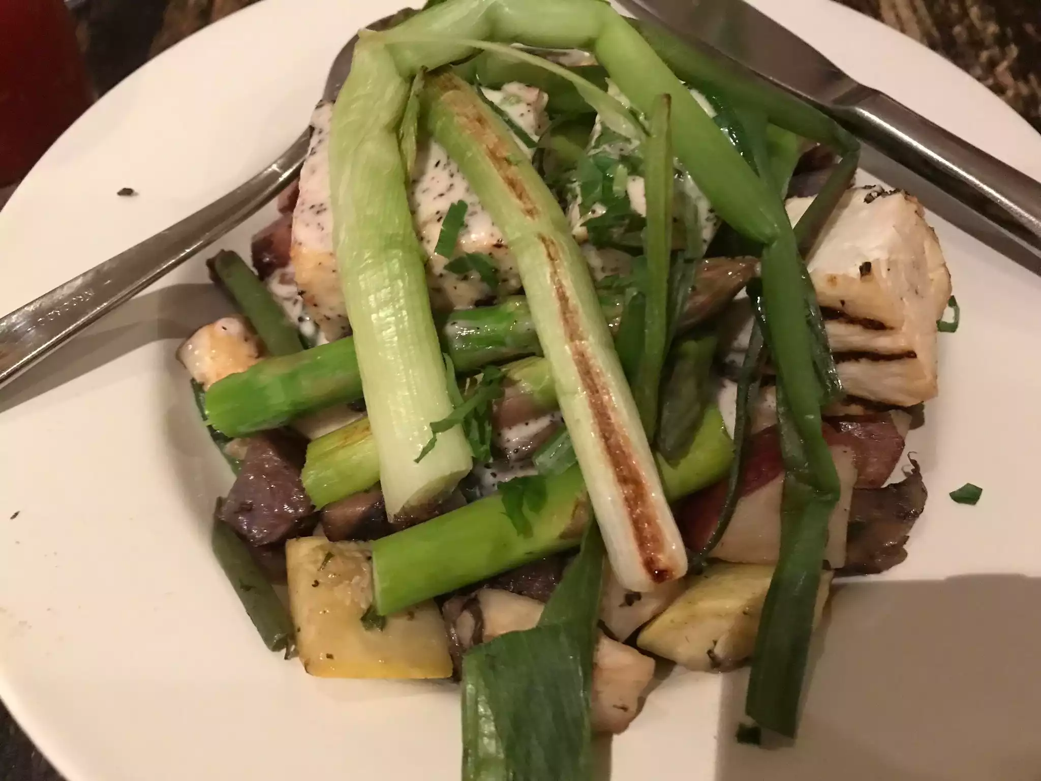 Chopped salad was the best ever. We enjoyed pumpkin and squash ravioli, rice bowl with chicken and a hamburger. The hamburger was average. The rest was very good. We will return.