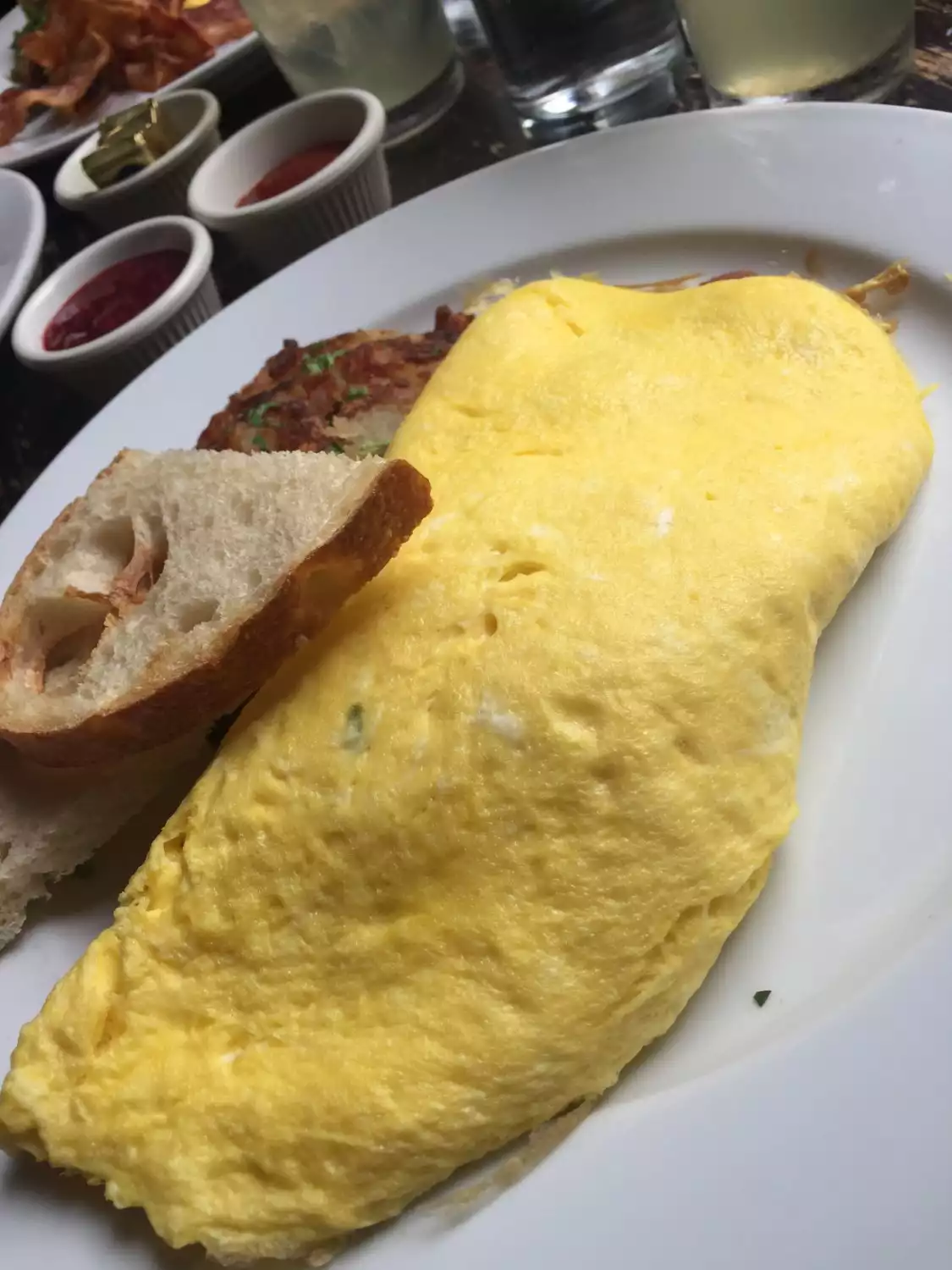 Perhaps only in America. The portions are huge the taste is basically missing. Would have preferred half the portion size with some taste in the omelette.