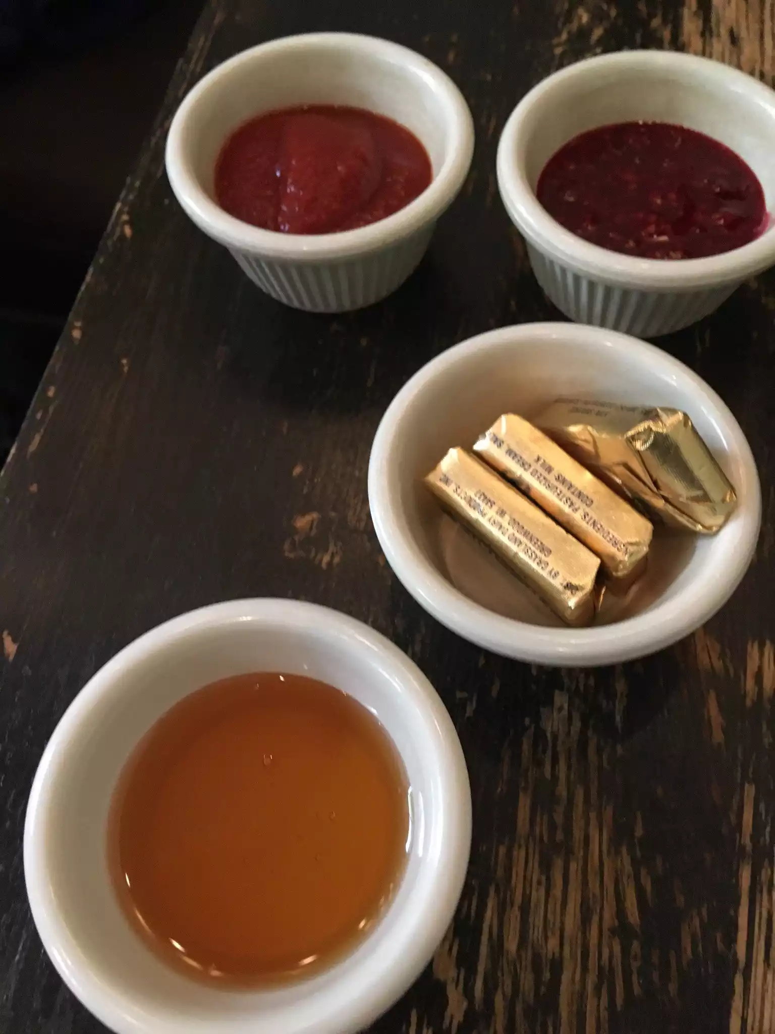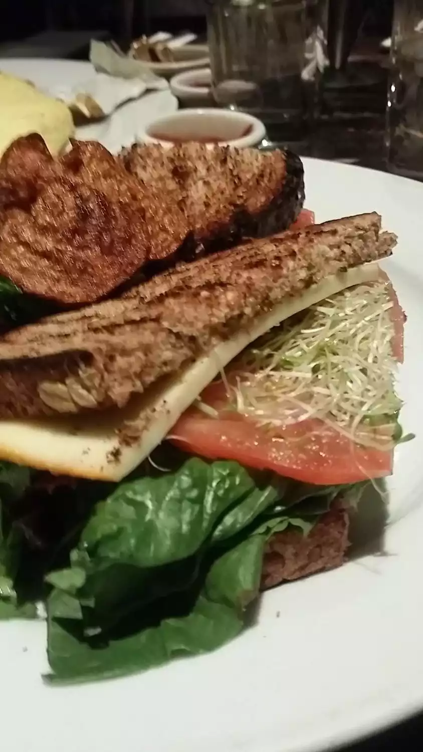 Fourteen of us gather the morning after a family wedding including vegans. Everyone found something they liked and it was very good. Good flow of coffee (Good tasting decaf!) and pleasant service. I splurged with the brioche French toast with raspberries and a honey lemon & butter syrup. Light and delicious . With a few tweaks the veggie sandwich with spring mesclun lettuces was great for the vegans. Others had traditional breakfasts, eggs Benedict with and without spinach, pancakes etc. All the food was excellent. A benefit of the beautiful weather was outdoor tables - being Sunday there was no active construction.