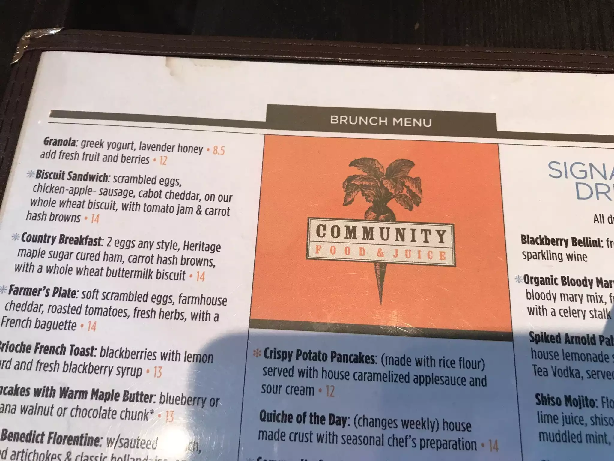 Last Saturday we had breakfast at Community. We were 3 adults with 2 dogs and they sat us outside and brought a bowl of water for our pups- which was very thoughtful. I had the Greek Yogurt with granola, fruits, berries and honey. Absolutely delicious! My fiancée got the Pancakes with Blueberry on top and my friend got the Country Breakfast. Please note that it comes with carrot hash browns- which is not the norm but still very tasty. The waiter was attentive even though they were busy. I’ve had breakfast around the neighborhood and I have to say this is one of the tastier meals I’ve enjoyed. Will gladly return to Community.