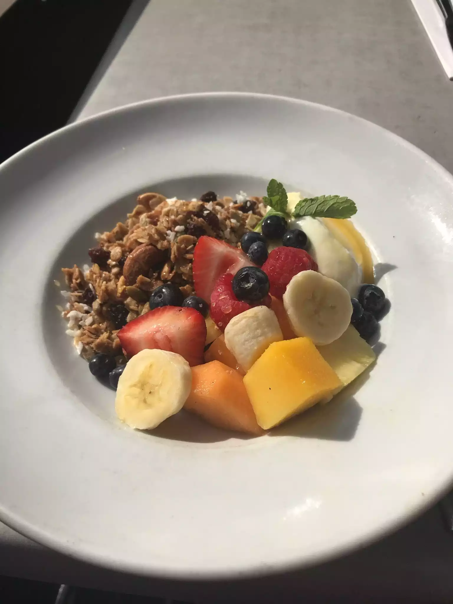 We went here for lunch with an old friend. Two had eggs benedict; I had the salmon salad with scrambled eggs. We shared fresh fruit for dessert. Everything was very good, and the prices were reasonable. This is a very popular place and deservedly so.