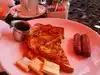 I was staying in the adjacent hotel and stopped in for breakfast. They are pretty small and had a lot of tables for larger parties - only a couple of smaller tables. I had the omelette and it was good - no complaints