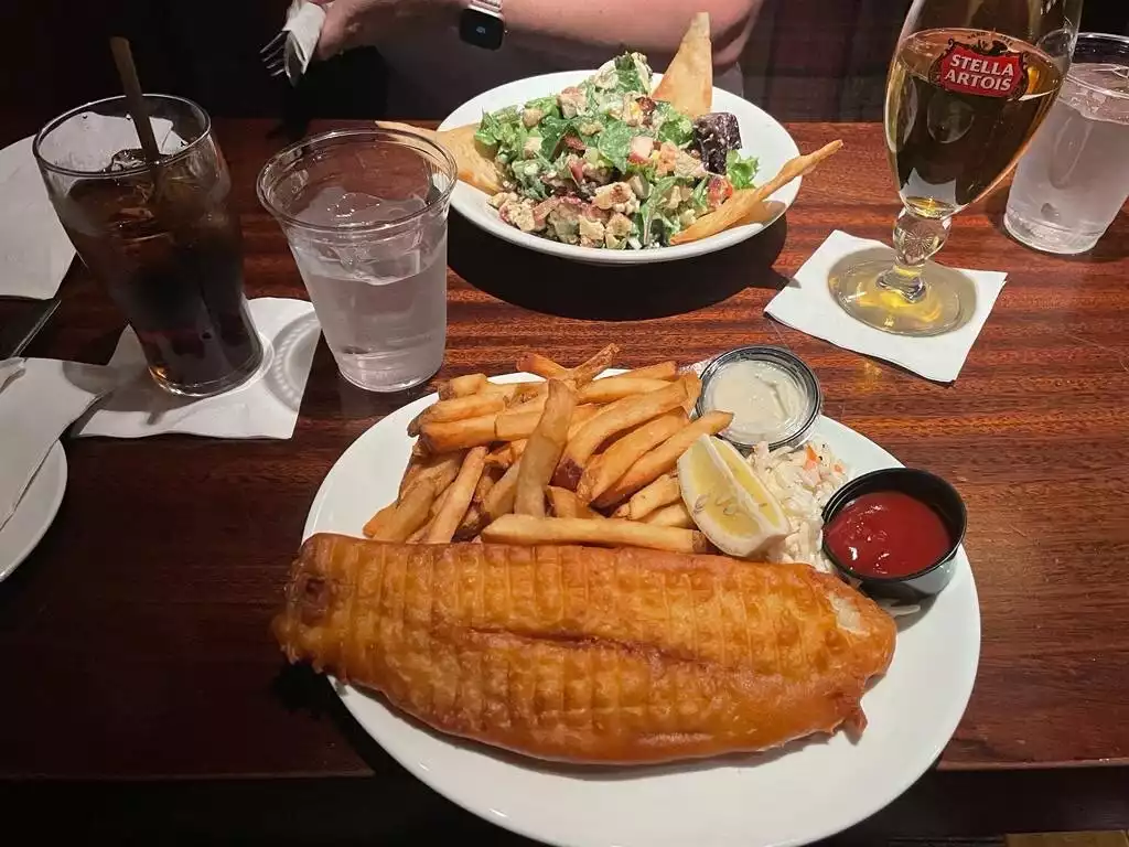 We picked this location because it was close to the theater we were attending. Fish and chips were excellent. Burger was average. Rude and unfriendly staff. There are tons of other options.
