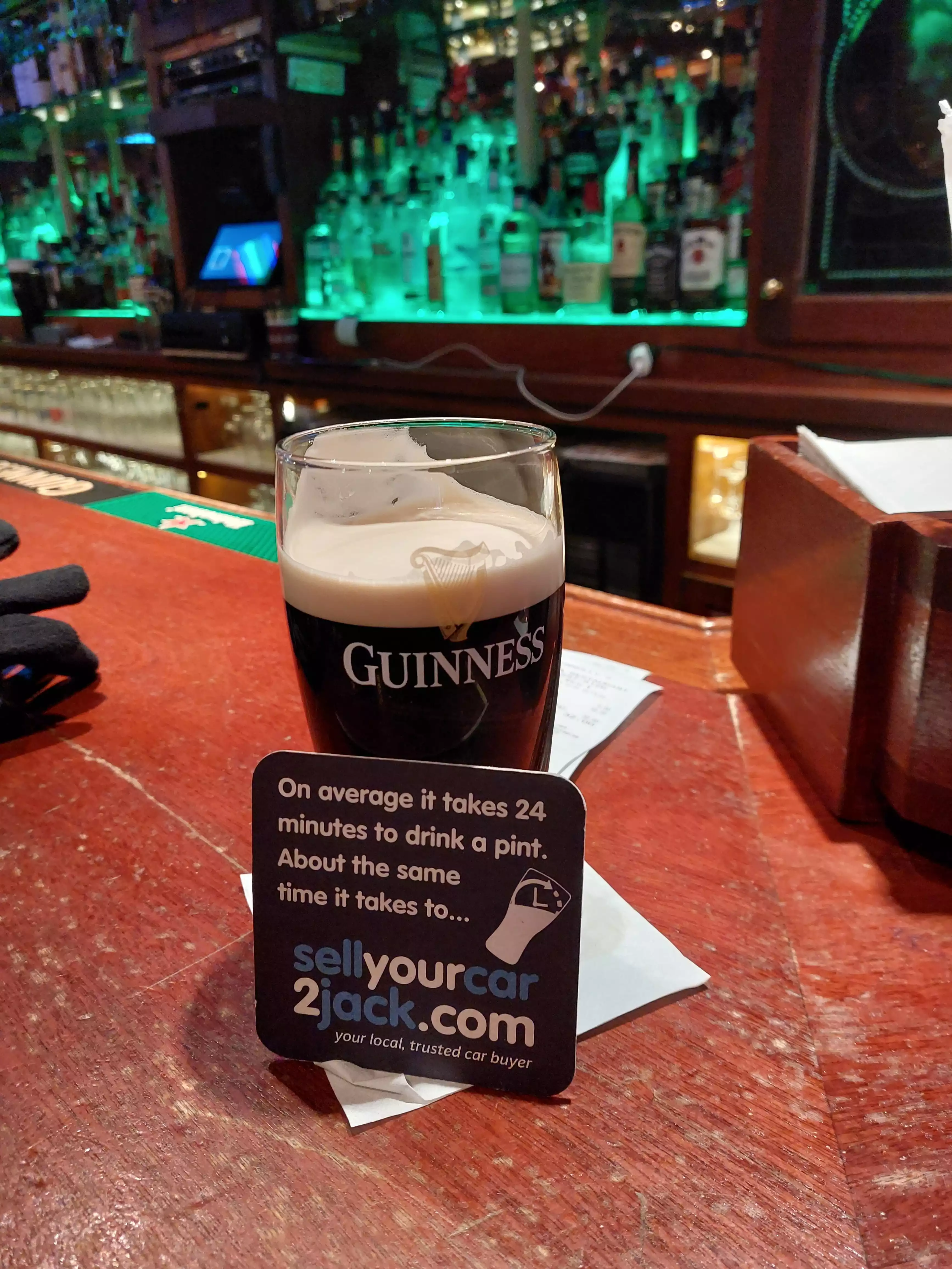 Brilliant pub , great atmosphere , beer was good , the guy behind the bar was brilliant .It was really busy but service was good .