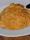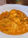 The first impression is already very good pq the Mood is beautiful! Chic, well decorated, cosy! We were super well served, the restaurant was empty because it was very early. The waitress was super attentive, had mastery of the menu and knew how to guide us when the boys didn't eat pepper, for example. We picked up a menu that cost $50 cle gave right to an entrance, a main dish and a dessert. The boys and my husband ordered at the entrance some almogegas and were delicious, came with the separate sauces at our request and I ordered the burrata that melted and the tomatoes were sweet, delight! From the main dish the boys ordered rigatone the bolonhesa and is good, but my lagoon pasta was splendid! The desserts very good and well served! It was worth it!