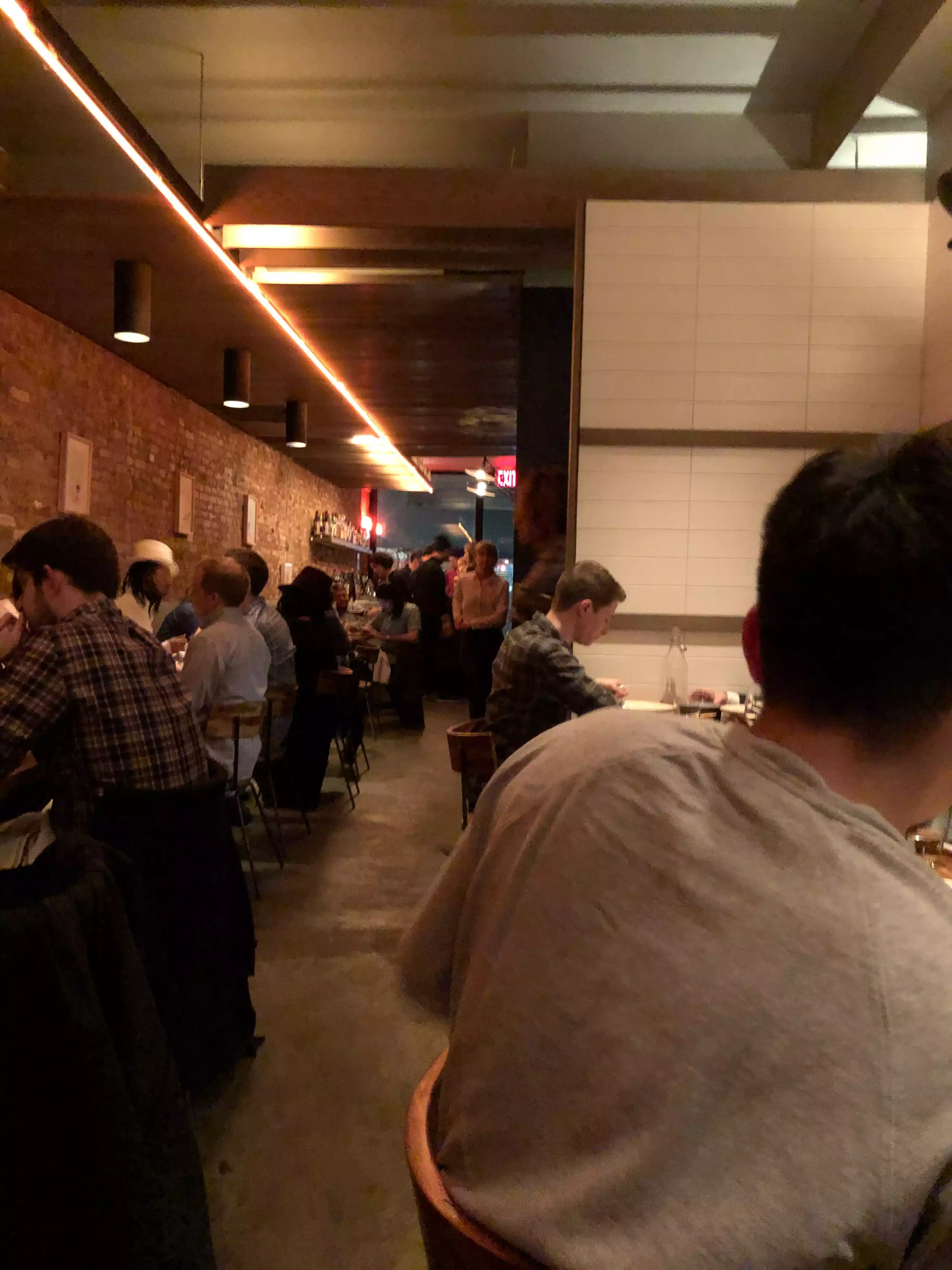 From outside looks like a casual bar. Dinning room is very Spartan but warm and clean. Staff are young hip but professional, competent and helpful. Neighborhood's very edgy and very NYC, not very touristy and very flash. Most customers were couples in their mid 20s to early 30s, people that appreciate Nomaesque food. Best parts were fantastic bread (worth extra 3 dollars), beef dish and deserts. The food is no choice 5 course at 55$, which is cheap. Wine list compact and nothing over 200 $. I wish we in OZ could do a hipster restaurant without the bull and attitude.