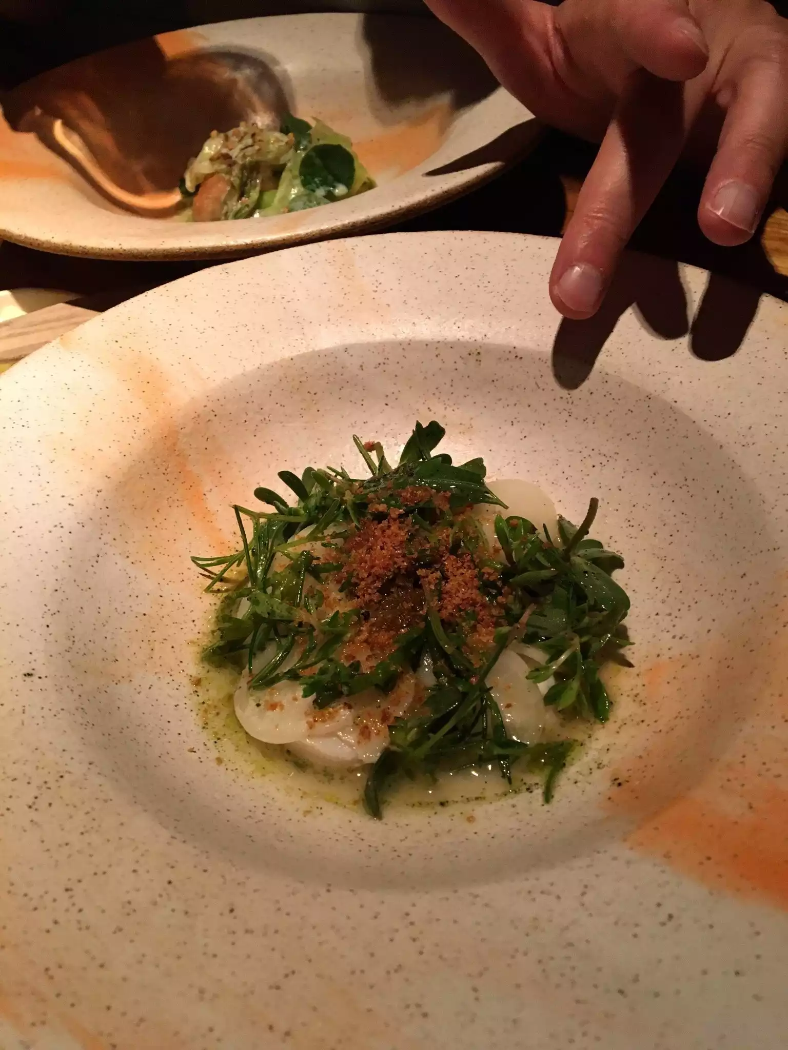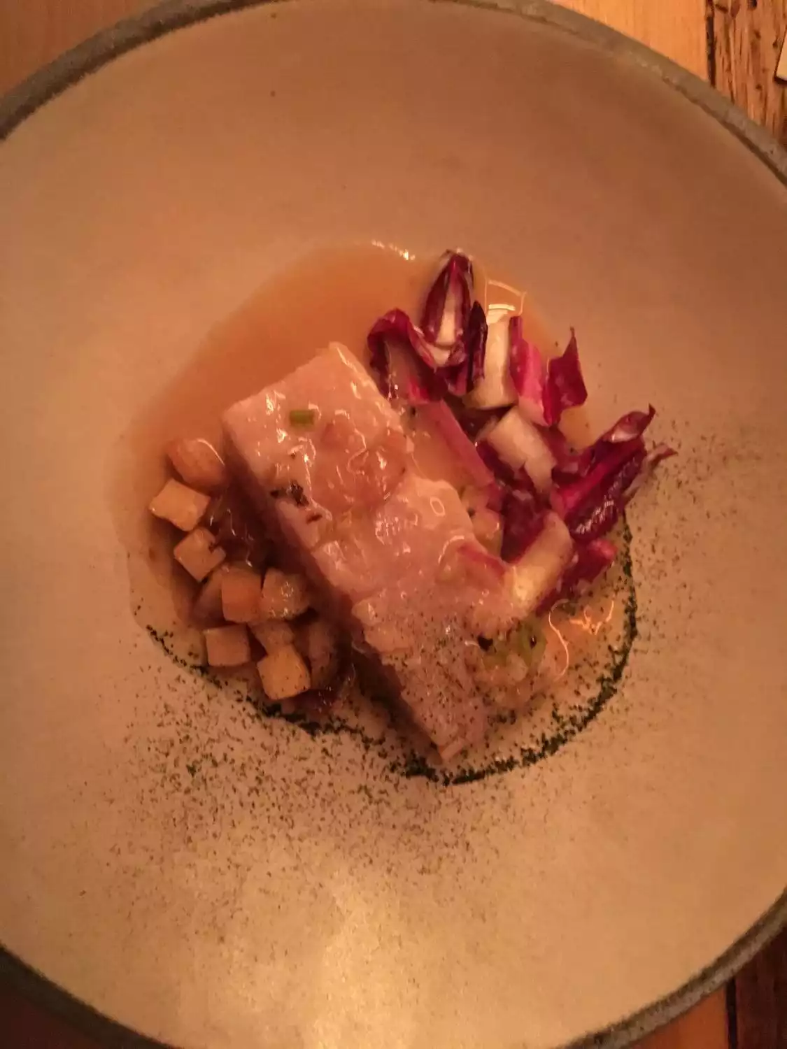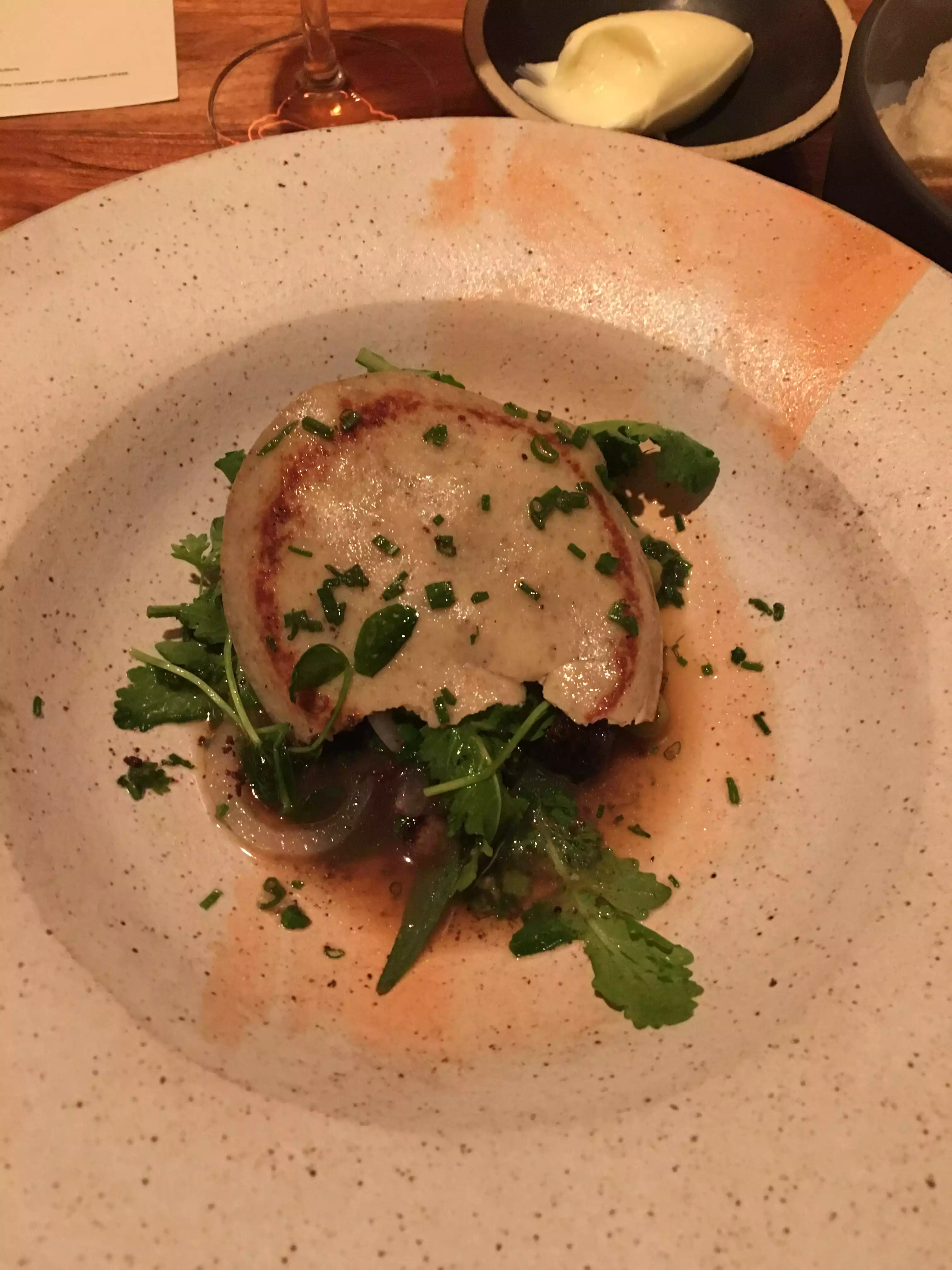 Expectations were high, just landed. Good price quality. New style European alternative food. Wines biological unfiltered , that does not mean it is jammy! Nice ev ning, good food, wines mwa, not my cup of tea! Bread is great!!!!