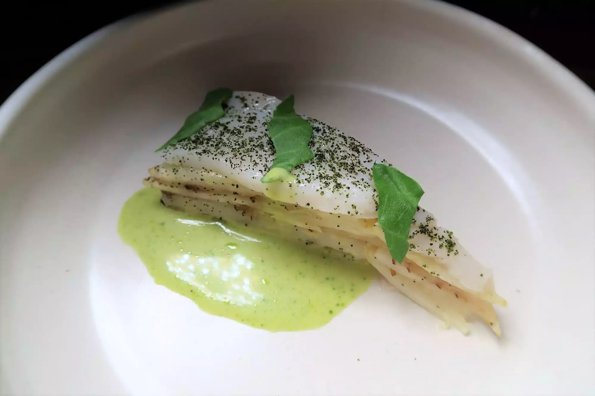 A 7 stories fix menu with different combination, where ingredients meet in an unconventional way. The row scallops with algae juice was surprising. An amazing dinner with a lot of surprise, super fresh seasonal ingredients and an impeccable service!