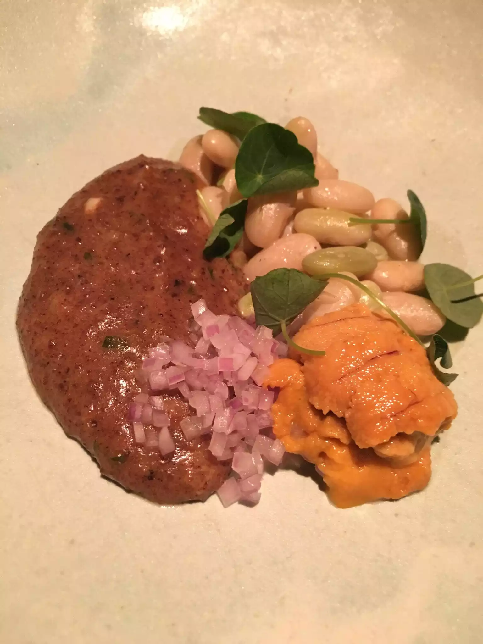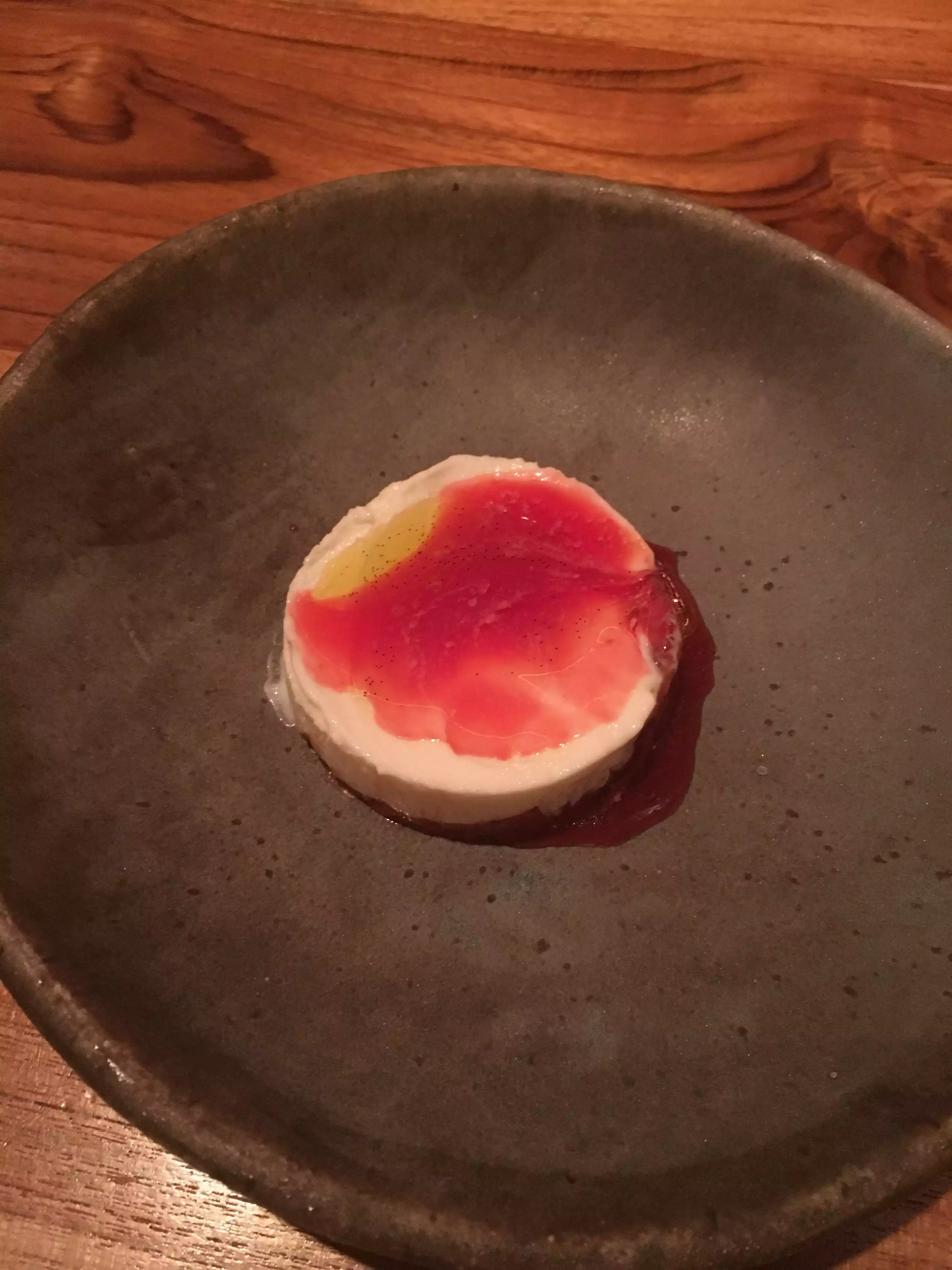 Our party could not resist trying this Michelin Star restaurant for a Saturday early-evening meal. Our server, who confessed that it was his first night working there, was witty, professional, menu-savvy and very efficient. If that was your first night, then I would suggest that you will have a very bright future. We ordered and shared the following from the limited, but specialized menu: (1) Hiramasa Tartare with kimchi, roasted peppers and scallion ash. Very tasty with a clean, fresh zing; (2) Wagyu Beef Crudo with rhubarb mole, chili and sesame. The beef was sublime. It was buttery with a touch of sweetness. A delicious contrast to the light tartare; (3) Boston Mackerel with sorrel and heirloom tomatoes. A decent size piece of fish, which had the perfect, fresh oiliness that was 'cut through' by the sweetness and slight acidity of the tomatoes and the lemony tang from the sorrel; (4) Boudin Noir, which is black pudding or blood pudding. Now, some people may be put off by this. Don't be! It was rich, hearty and delicious, and the addition of beans, verde mustard and fushimi pepper balanced the flavor nicely; and (5) Concord Grape And Bitter Almond with almond cookie and burnt vanilla. Well, this was unusual and kind of hard to describe. Don't get me wrong, it was fantastic. It was sweet and tarte, creamy and crumbly. A real dichotomy of flavors that just works. All polished down with a bottle of chilled rose. It is a reasonably narrow restaurant, but the seating was well thought out. Busy atmosphere, but friendly. Couples, family and friends are probably the main customers. If you are looking for something diverse and different, but really delicious give it a visit.