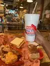 Walking distance from the Convention Center. Very good BBQ. As you walk in you select your type of meat and the amount in ounces. It's cut, wrapped and put on a tray. You take it to the counter where it is sliced, while you select your containers of sides. The mac 'n cheese and potato salad were excellent. Pay, grab utensils (metal), find a chair or bench and then go to the cooler where you can ladle out your own beans (quite good). I had a half pound of brisket and it was very good.