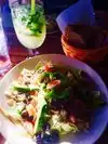 Ordered ceviche & meat pie. The ceviche came on a platter floating in liquid, chewy chunks of white fish, looked like canned tuna, tiny canned shrimp, tiny cubes of tomato & onion....very sorry excuse for ceviche. The meat pie was lacking in meat & the pastry was tough, not appetizing. The sangria was alright but not the best. Waitress was obviously tired of customers, she waited on the large group that came in after us before she took our order....not good!