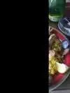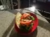 Once you find the stairs you can get away from the crowd crush and enjoy peering down over the market. We enjoyed the balcony seating and we’re waited on immediately. Try too our drink orders and then within the minute another person was dropping ice cold Coke at our table. We decided on salads and, no kidding, we had them in under five minutes. Lots of meat and a nice mixture of greens. They also have a freshly made “hot” sauce to drizzle on the salad. Nice experience in the middle of mayhem. Thank You.