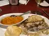 I met a colleague for lunch. We were greeted with a friendly smile, let to a table, and water was quickly delivered. I had the grilled chicken for $10.99; the chicken was quite flavorful, yet was lukewarm as was the yams it sat upon. The chicken was also barely 6 ounces, and no other side except a biscuit, so I left wanting more. Our server was kind, but rather inattentive. It was just okay for me but I would go again and try something else to see if it’s any different.