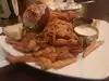 So I took my mom here for the first time today. So I ordered two appetizers. I ordered crawfish flatbread with cheese and spinach it was good. I also got the crab begets I was going to get this regardless it was also recommended by my waitress this is extremely delicious 🤤. Appetizers went like water fast. Mom got the 2 crab cakes with angel hair pasta shrimp alfredo. I got the seafood platter with Fries,onion strings,fish, shrimp and crawfish with a crab cake oysters were supposed to be included but they were out so I received some extra shrimp. Mom plate first then mine.