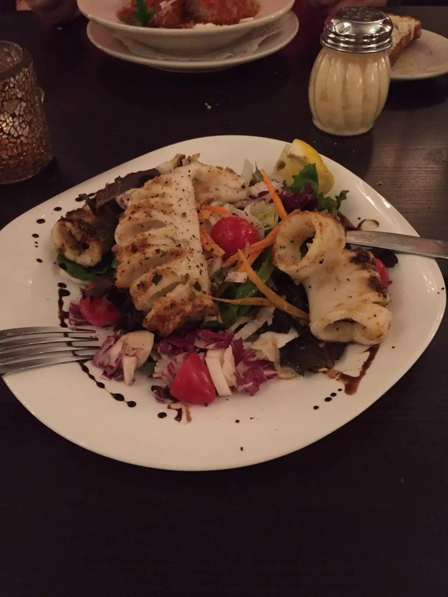 Grilled calamari salad is perfection! Service is always great and the menu never disappoints. Never had a bad dish in this restaurant and never visit NYC without dining in this restaurant.