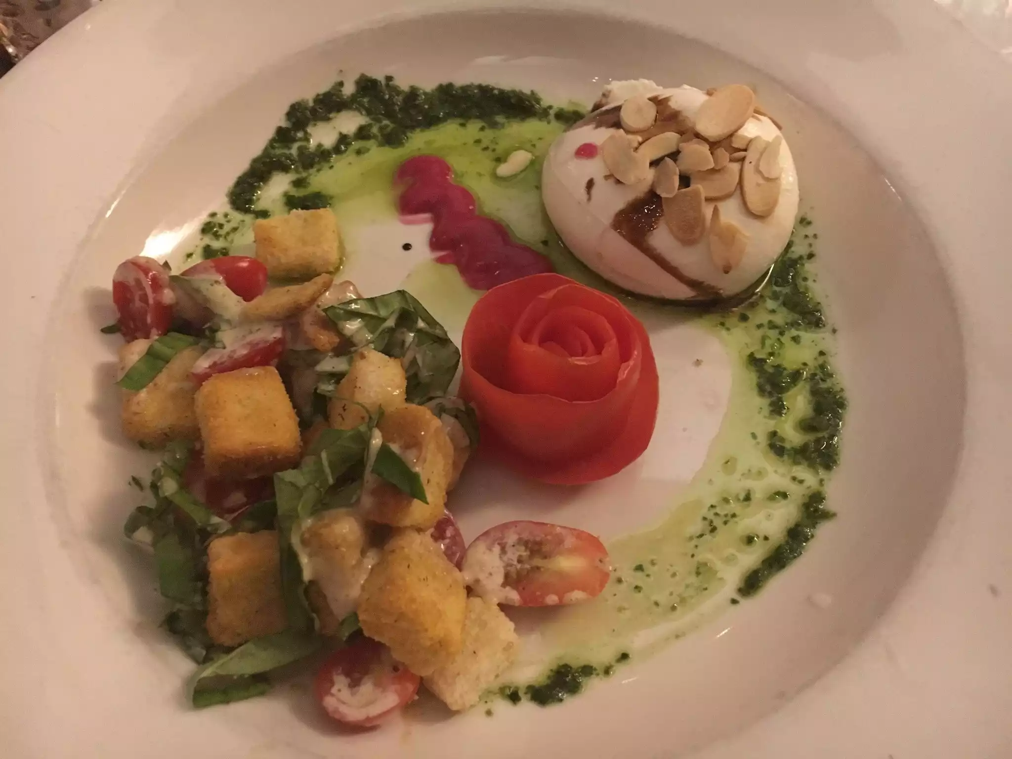 We assumed that this would be a decent Italian restaurant, but nothing more. We were very pleasantly surprised. The dinners were excellent - wonderfully prepared and elegantly presented. The Chicken Martini was remarkably flavorful, tender and perfectly seasoned. The Capellini Coppola was delicious, and the capellini were cooked correctly (Capellini are very easy to overcook.) They had a deal which included a salad or appetizer, entre and dessert for only $30. The desserts are worth it. They are not overly sweet and very light. Since the proportions of the entrees are generous, the desserts were a fine ending. We have had meals of this quality before, but rarely for this price.