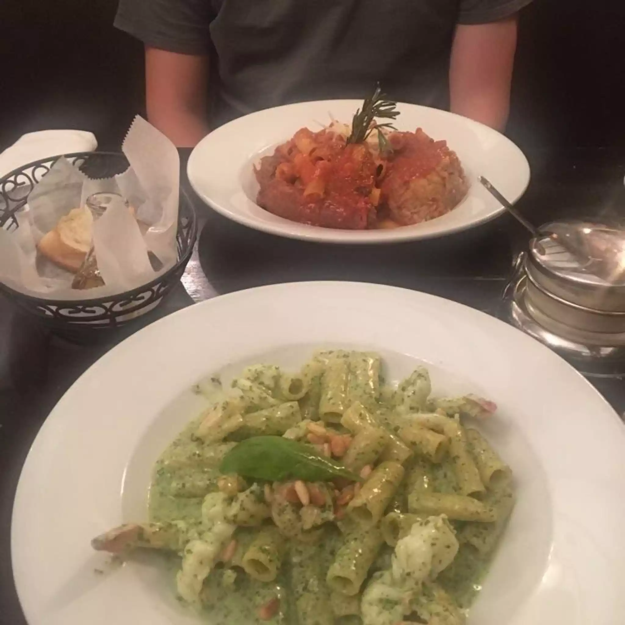 The stuffed mushrooms were a real treat ! My entree was the Rigatoni Pesto w shrimp...Best pesto sauce I have ever tasted !