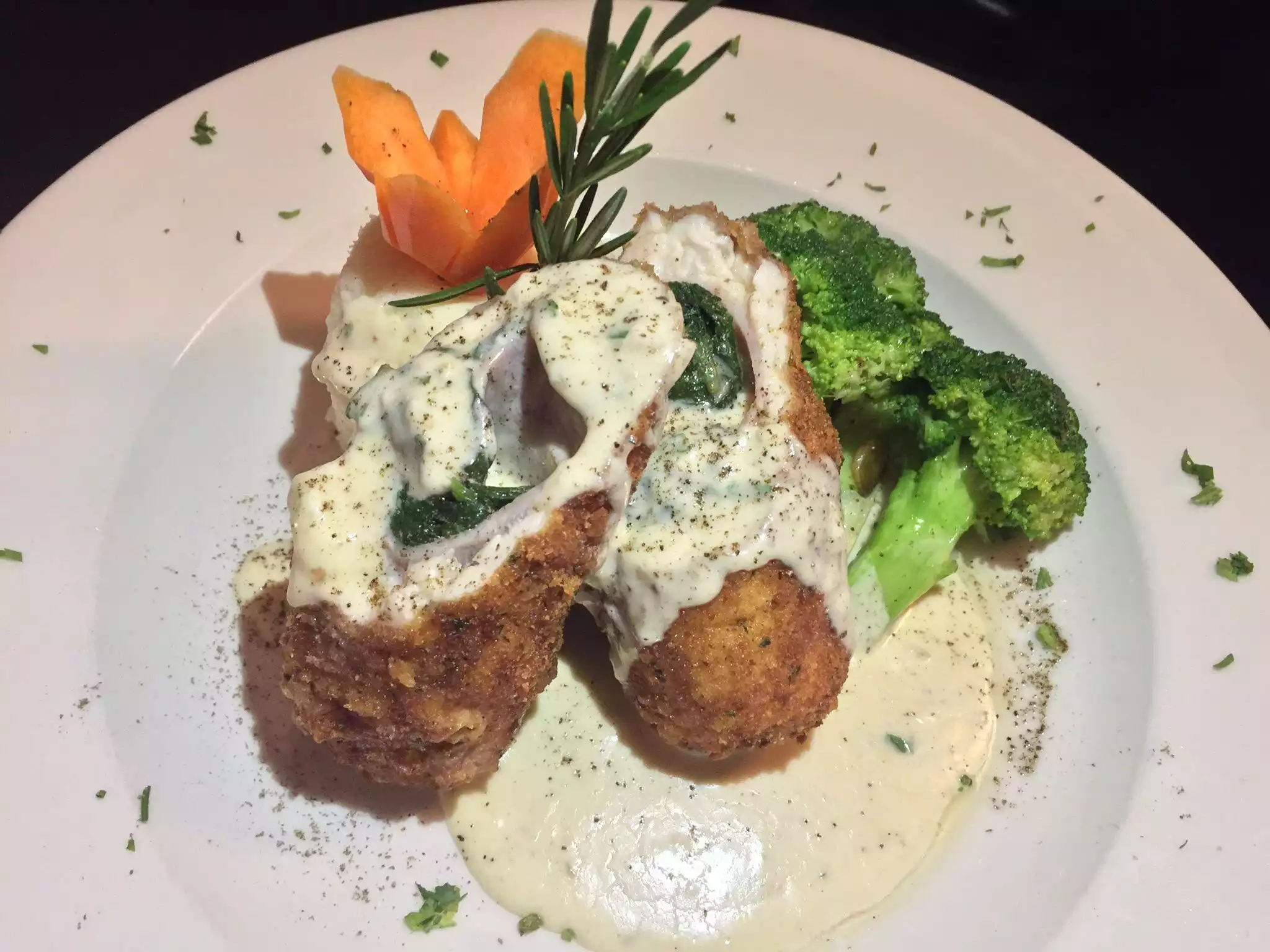 Tortellini dish was great. Chicken Milanese was so-so and dry. Portions were pretty big. Over all very nice white tablecloth type place. Staff very friendly and attentive. Ambience great. We just sat and eat and talked. Did not feel rushed at any time. I would explore other items on the menu and try something different next time.