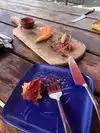 Interesting tapas... Deviled eggs, octopus, cheeses stood out. Great rustic ambiance. Being by the water a plus