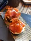 As this was a tapas style spanish restaurant we ordered a number of sharing dish's. This started with three bite size sticks a chorizo one which was as you would expect the chorizo fell apart in the mouth and had a strong flavour The Quails egg had a lovely smooth flavour, mellow but blended perfectly. Great bite. Tortilla spinach had a cheesy aftertaste nice mouthful but again just the tastes you would expect. Next was the meat and cheese board with amazing salted almonds. The tomato sauce had an almost bitter aftertone the manchego was manchego and all the meats weren't exceptional just clean flavours as you would expect The salmon qué fresco was topped with top quality, flavourful salmon and cream cheese with a crispy cracker esque bread Spanish ham egg and chips, prawn, chorizo and egg ;) flavour profile matches perfectly and eating the chilli added LOADS of spice. The croquettes where creamy in the middle crisp outside again as you would expect. To be honest this place is good, all the flavours are strong and as you would expect and how they do taste but for me there was no fair, nothing exceptional, nothing that made you think I am so happy I came here and then when the bill came it actually almost upset me as even without alcohol it was a very expensive meal to just be mediocre. Please don't just read this and thing it is a dig, I think they do what they do well but for me and for that money I expect to see some flair not something I could get in a shop or do myself.