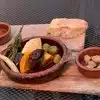 It was a Windy night at Embarcadero at the time if our dinner. We booked a table in advance and asked for standard table and not outdoor setting . However, when we arrived we were offered a table outdoors in the chilly 🥶 night . I asked to be moved inside but there was no table available for our reservation. So ,we were offered a temporary table outside . It was a very chilly night but they got hitters to warm you up boy still not very comfortable sitting since there are metal chairs without the cushion and metal tables placed on the pavement .so it feels like you are sitting at the backyard if some kind and not at the Michelin star restaurant. No place setting , no table cloth . Feels kind of too casual for the place where people spend $250-$300 for dinner . However, after we ordered a few martinis 🍸 and ordered a food we got cozier and warmed up and decided to stay at this table and not to be moved inside. Our waiter Marco was a very attentive,friend, nice and accommodating .After a few martinis 🍸 we ordered a bottle of a fruitful Zin wine 🍷, a plate of grilled octopus, warm olives 🫒, beets & goat cheese salad , bread & olive oil , honey glazed grilled pork shoulder and grilled trumpet mushrooms 🍄 . For dessert we had cream Catalan which could be better if it was prepared fresh but this one was brought from the fridge . The food was delicious and beautifully presented in the wooden trays. However, the portions are on the small side even considering it’s a tapas place . Even in F Spain where we were number of times tapas are larger and mush cheaper . The service was attentive but not intrusive .