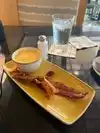 The breakfast was very tasty. It was different but just enough to be a nice surprise. We ordered two orders of the Avocado Egg Toast and an order of Shrimp Friatta. My daughter and I ordered a Baby Farm Salad to split. We didn't need to order a salad, the Avocado Egg Toast was served with a salad but our server didn't mention that. We ordered two iced teas and a coffee. It's a little pricey for a breakfast place, we spent $65 without counting the tip. They do serve you little complimentary muffins.