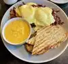 The famous "grits of the day" were watery and tasteless. Usually they never miss. This time, tomato and goat cheese were lost in the soupy pink mess. Soft Shell Crab benedict was tasty, but the hollandaise sauce was rubbery and solid. The corned beef hash was dry and tasteless - how, when usually it is so very good? Maybe Chef was on vacation, or having a bad day, but this experience was nothing like the Corner Cafe brunch we usually love and recommend. Unlikely to return now, since this was so disappointing. The server didn't stop long enough for us to tell him how bad it was, and dropped the check off 2 mins after the entrees arrived, never to return. Maybe he know something was wrong in the kitchen that day.