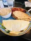 I got the three egg cheese omelette. It came with bread and cheddar grits. My bill with a soda was $15.61 before tip. Not a lot of food esp considering the price. Nothing really wowed me. However, it seems to be a hot spot for local professionals on weekday mornings. Service was great.