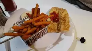 We didn't have a lot of time and the place was busy. But once seated everything went pretty fast. I had the fish tacos which was three of them: delicious. My wife had the turkey burger with a side salad. She was happy, too! The service was attentive through-out and got our bill as soon as we asked. Top notch!