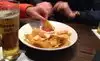 Ordered a burger, some dip/chips, a brownie, 1 beer and 2 drinks.... $90 with the auto 18% tip... Way overpriced $17 mixed drinks Service was nominal