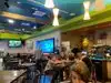 We visited on a Wednesday evening in October and just missed the rush! We were able to get a table without waiting, but the restaurant quickly filled up. Priority Pass is now offering members $30/pp for up to 2 people ($60 total) on one card (one account) towards your meal. The restaurant automatically includes an 18% gratuity (don't overlook that!) so our bill was higher than we expected when we got it. But even with the included tip, our bill was only $3.64. Our server was amazing and slammed and still keeping up, so we gave her a little extra on top of the 18% that was already worked into the total. We ordered the chips and queso, the salmon dinner and the Corona Blue burger with 2 non-alcoholic drinks and our total was $63.64 (after the 18% gratuity). The food was decent, not amazing and not necessarily worth the prices, but it is in an airport and it's a great atmosphere. I would stick to the basics, as the salmon was not worth $18. The employees and our server Joanna was jam up! We will return every time we fly through Miami and have the time. Especially now that Priority Pass basically gives members a free meal! I agree with the added gratuity because it ensures the servers get tipped when patrons don't have cash on them and the bill doesn't go over the free $30/$60 with the Priority Pass benefit.