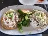 We came for lunch and sat inside as it was cold out. The outdoor patio is very nice but inside it smelled like sanitizer and the decor was nothing special. We came in because they had clam chowder on the menu, but they told us it was not available. The food was below average though the service was great. This would be a good place for drinks on the patio, but not for a nice meal.