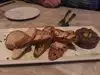 Excellent food. Excellent service. Excellent atmosphere. Excellent meal. Reservations a must even for a Monday. Hostess graciously moved us to a roomier table. The charcuterie platter with five meats and five cheeses comes with a listing of the meats and a listing of the cheeses. Each meat is paired beautifully with its cheese. Truly one of the best appetizers of my life. Dried cured rib cooked so perfectly and so tender it melted in our mouths. Strawberry chiffon dessert a medley of perfect flavors. The place is so civilized that new tablecloths are water sprinkled and then ironed on the table. Great red wines poured into carafe to aerate them fully. The finest dining traditions in a totally modern setting with a bustling open kitchen. Wonderful.