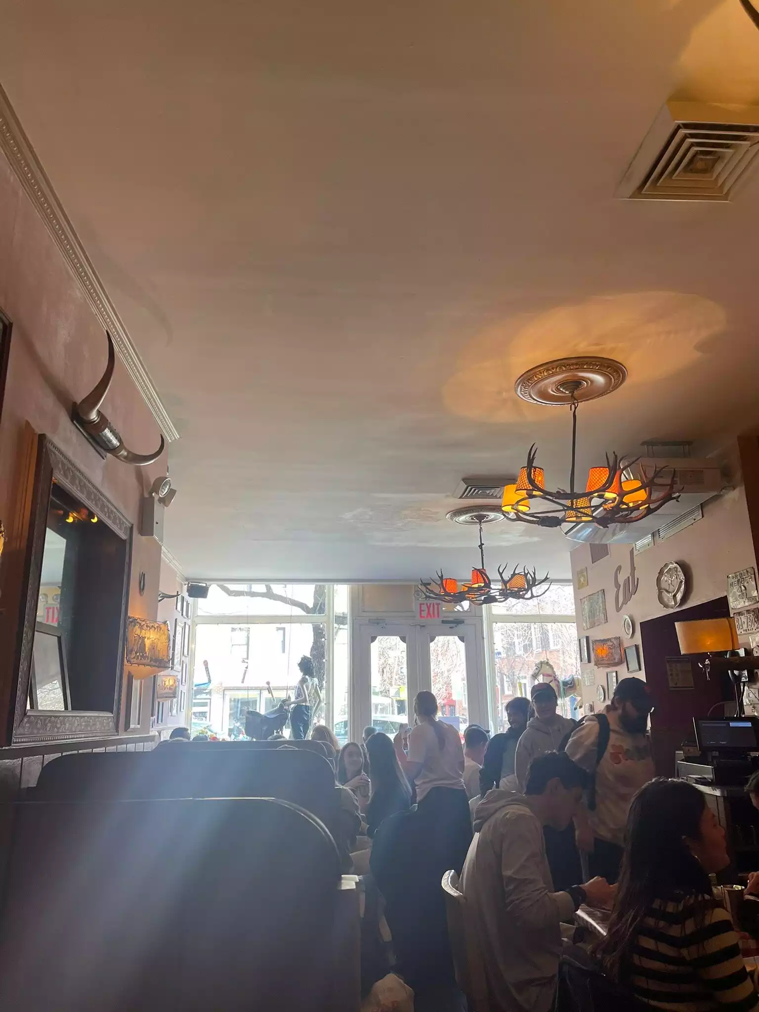 Cowgirl has a great location with a great atmosphere and interior design. They serve good meksican food and beer.