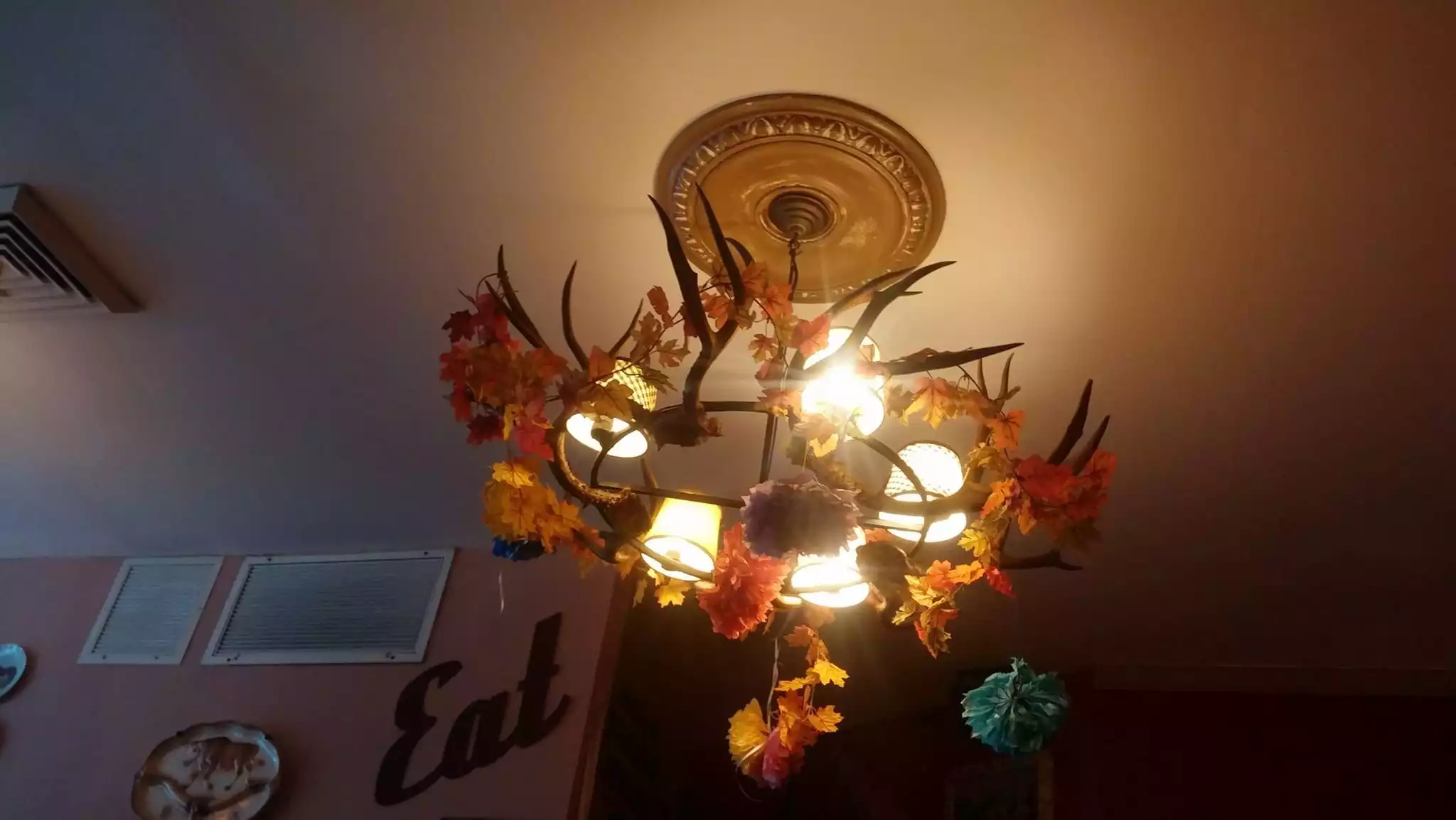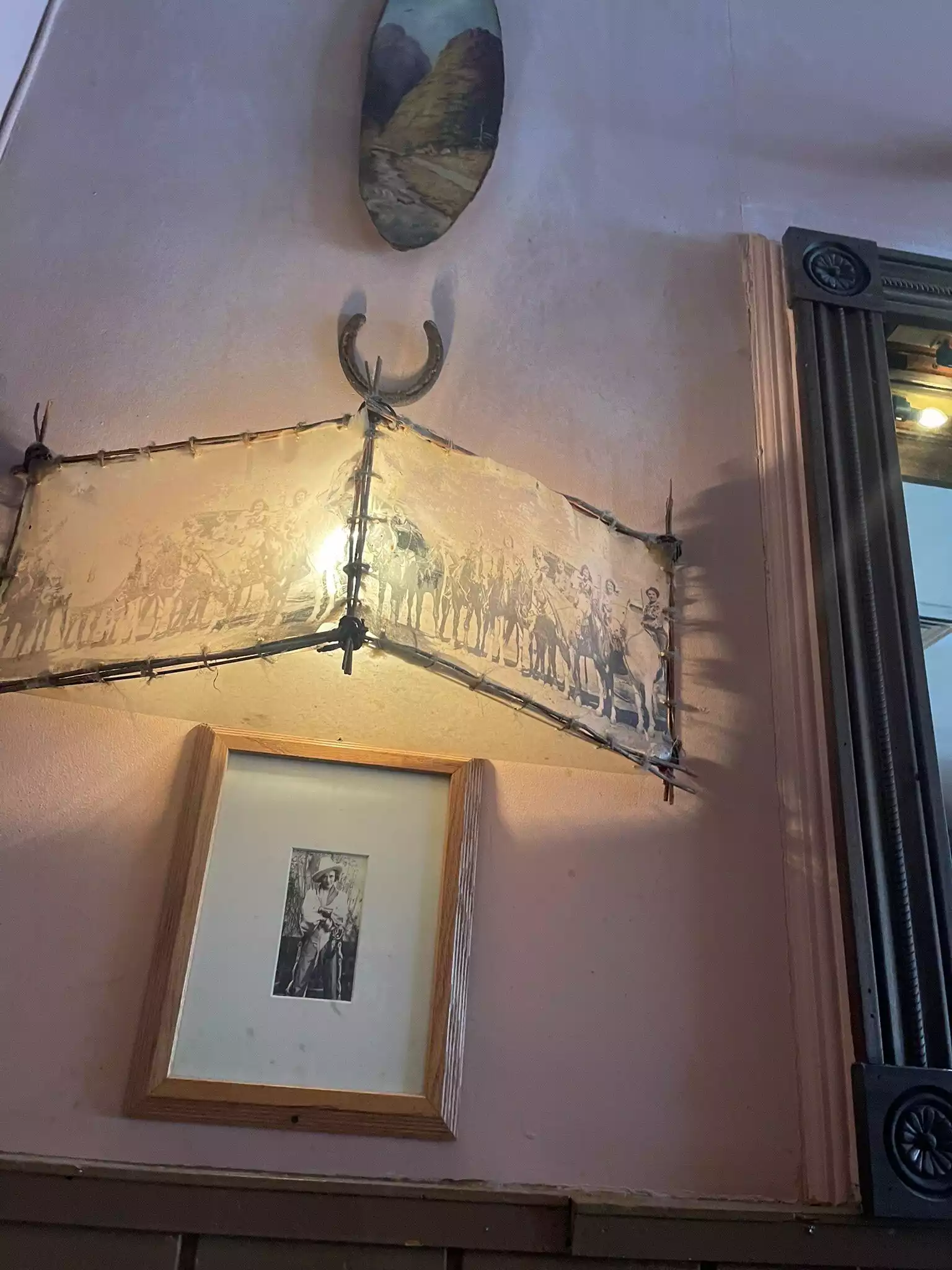 We’ve been here a few times and it’s always a great experience. Worth a visit just for the old western lamps , horns, photos of cowgirl& horses, and furniture in back room! Don’t miss the walls on the way to the downstairs bathrooms. Now about the food. Reasonably priced , friendly waitstaff, good menu choices. We had vegetarian chili, and the macoroni and cheese with salad. Both were very tasty and good portions. The salad dressing was great- made in house ( I asked !) Took pecan pie home for later- excellent. Wonderul whippied cream sent along with it was a nice surprise.