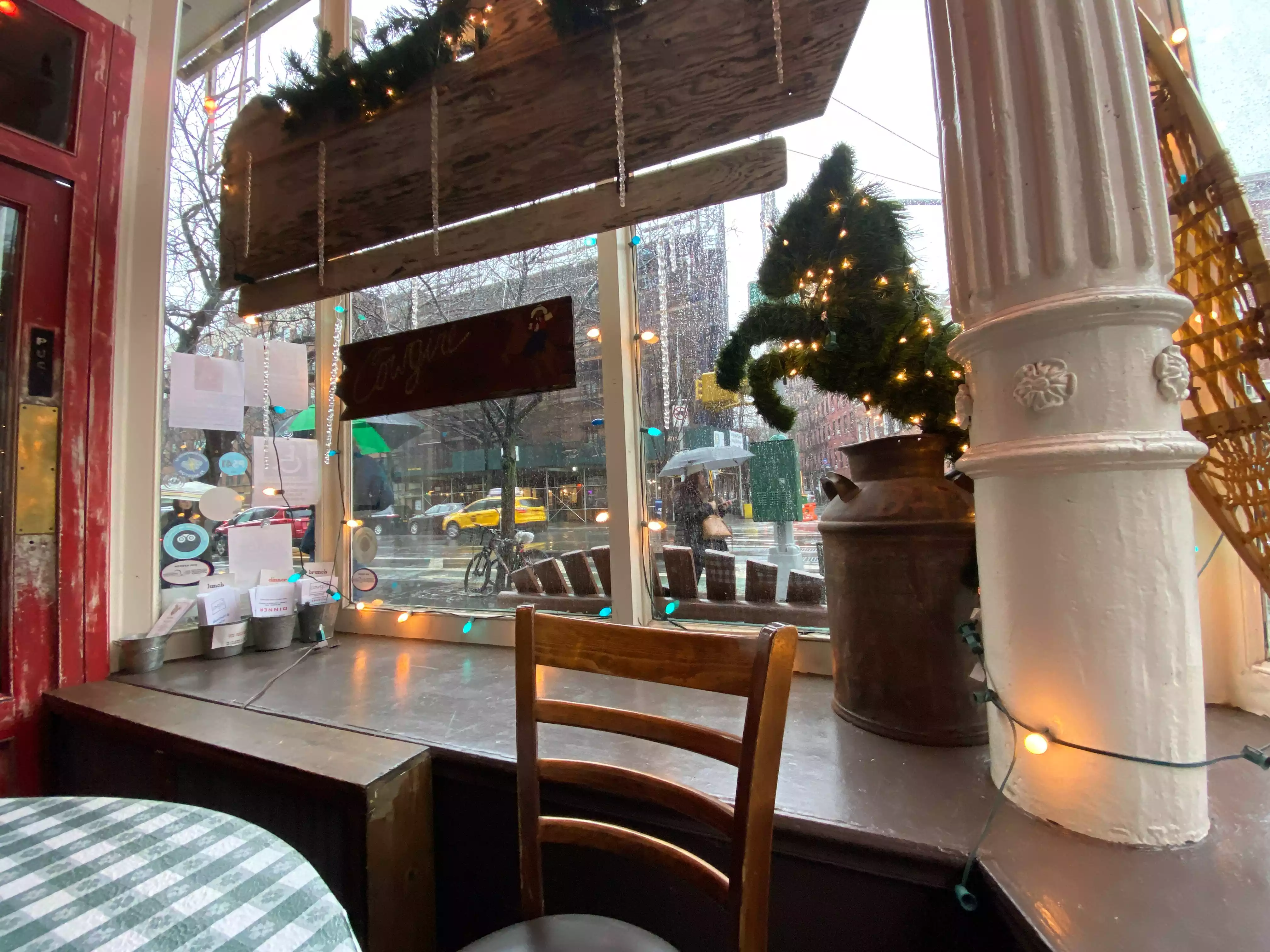 This very delightful West Village restaurant had fantastic banana pancakes with "The Ranch Handler". I have never eaten better:). Great service and an atmosphere that reminded me of my mothers and uncle's upbringing in eastern Montana. Definitely a 5 star and a refreshing change from the frantic atmosphere of Times Square!