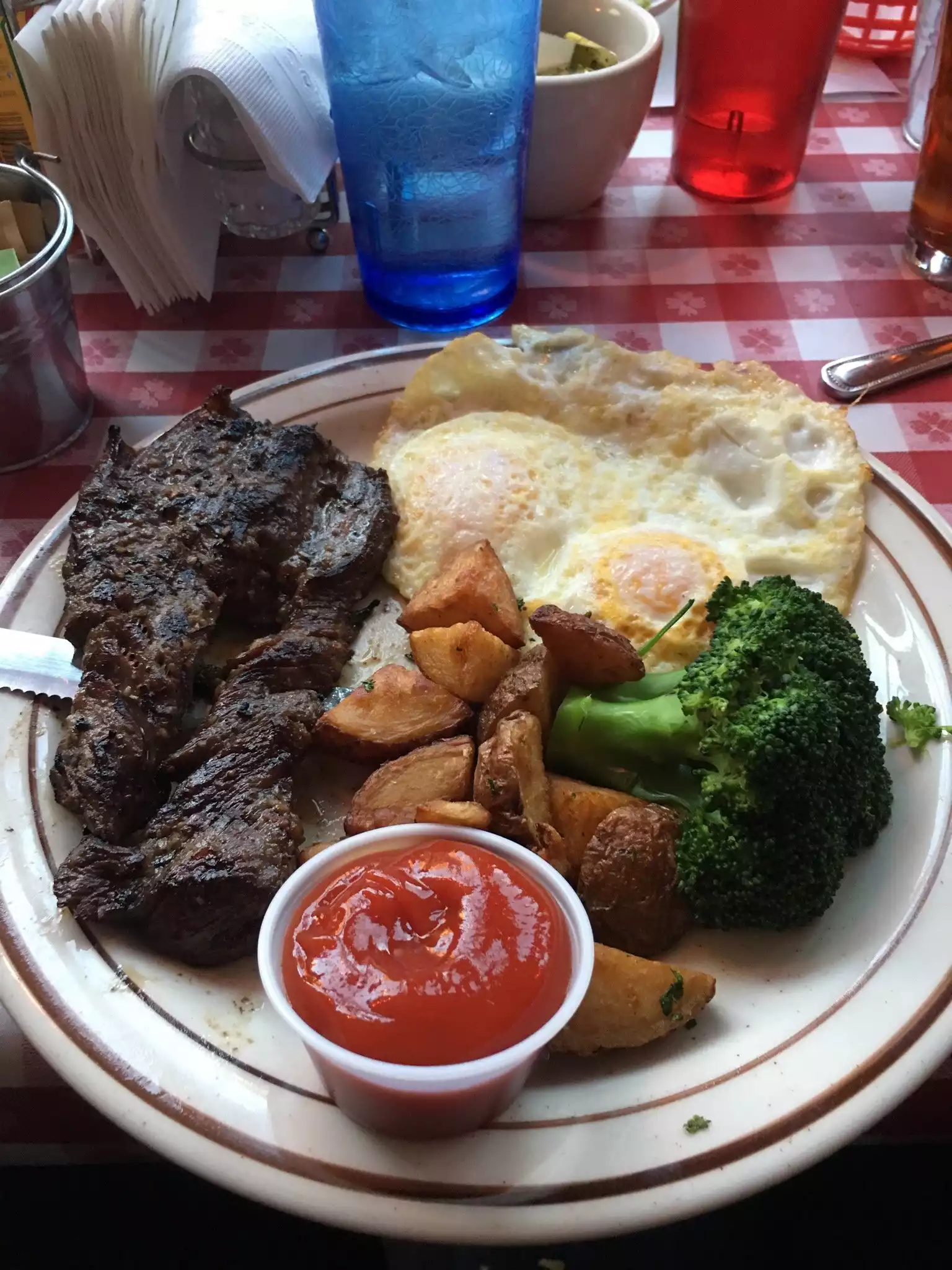 We ate dinner here on a Friday evening. Service was good and good buzzy atmosphere. Although the meals were large portions, the quality was better than expected for the price. We drank a pitcher of Margaritas ($50), and would recommend the hanger steak, smoked chicken and whisky pork chops. All excellent. Some of the vegetables way overcooked. The vegie chilli lacked chilli! Would go again for a casual meal.