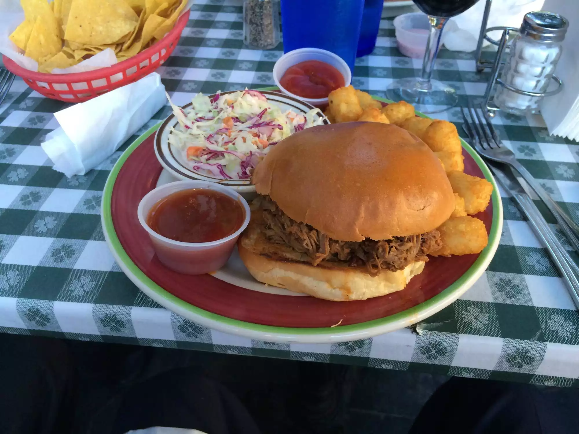 I go here for the southern leaning food, especially the pulled pork sandwich with tater tots. All the food I've had here has been really good. The decor with all the cowgirl photos is fun. Great place to take out of town guests. Only drawback is that it's very, very loud if you're there and it's crowded.