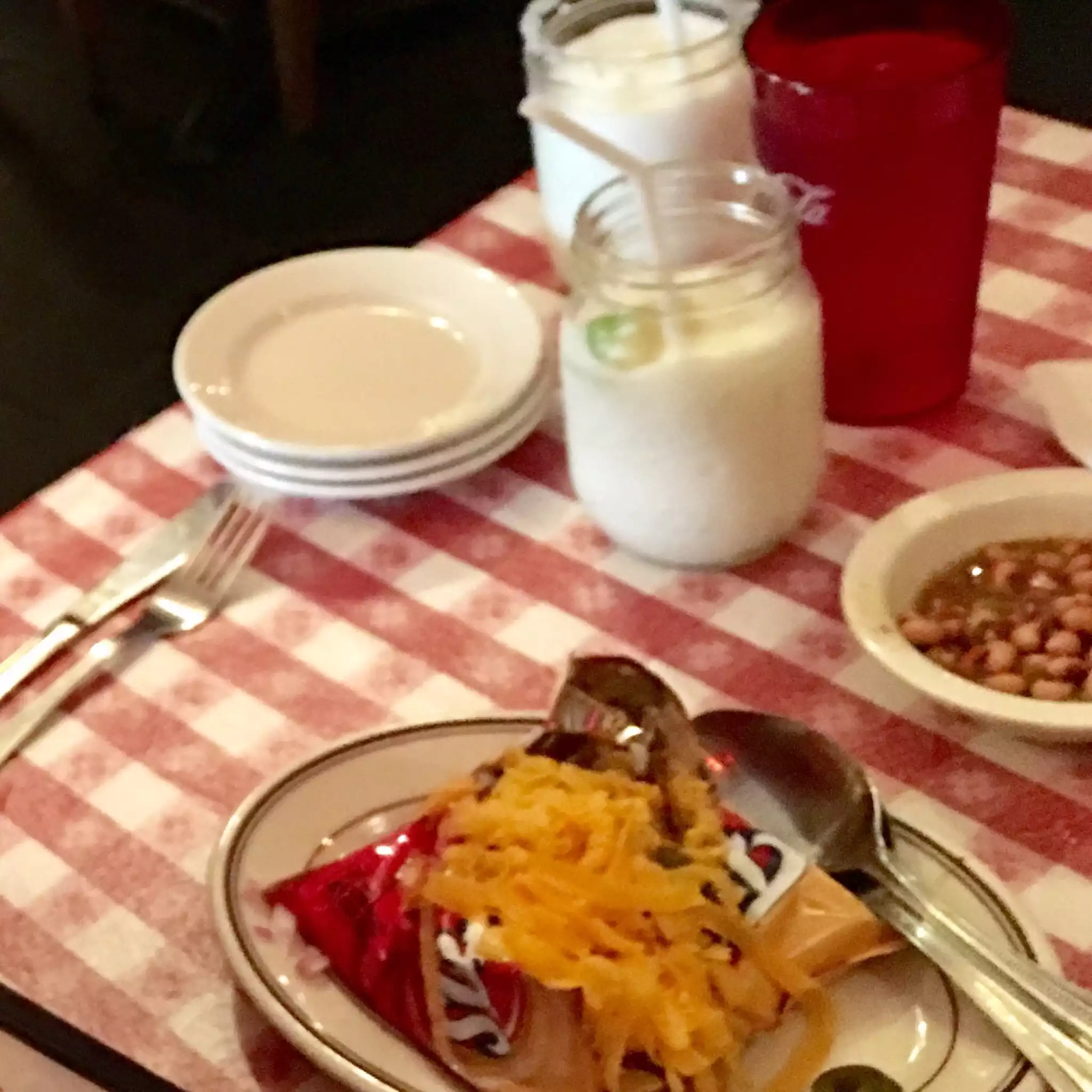 We stopped in for dinner per a local/friend who lives within walking distance. There were 3 of us and we ordered the fajitas and enchiladas, which was plenty. With an entree you get a bowl of chips and a bean based salsa. No free refills on the chips and salsa. The atmosphere was fun and upbeat. The HH was just on the drinks. There are cute donkey drink markers.