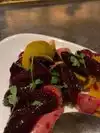 Enjoyed some NCAA action while dining on delicious bone-in ribeye. The beauty of the bar was that you can order half order of sides which are served only family style in the dining room. Bartenders are there to meet your needs as involved or not depending on your preference. The bread is a bit addictive - cast iron buttered yeast rolls. Steak cooked well with a nice crust. The beet salad was not my fave by a long shot. I would not order again and I am a beet person. It was just lackluster and there were other options that would have been better.