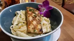 I like the fact they use vegetables and herbs from their garden. Didn't like long wait time (probably due to staff shortage) and small selection of entrees. The caesar salad had a delicious sauce and beef soup was pretty delectable too. I also liked the sautéed shrimp on the salad. Pulled pork sandwich was average.