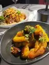 My daughter is vegan and I’m not and with not many healthy options in Vegas, we were so excited to find this! It was a Monday night around 9 pm and it was pretty quiet. Our server was so friendly and gave great suggestions. She was also very knowledgeable about the menu. Cocktails/mock tails were tasty. We started with the zucchini blooms-YUM! Wish there were 4 instead of 3 they were so good. My daughter had a truffle mushroom pizza and I had the eggplant filet- delicious flavors and great presentation. We shared some kind of citrus custard dessert that was so good! Don’t be scared off if you don’t eat plant based I loved it! Will definitely return when back in Vegas.