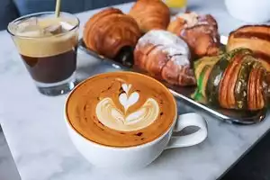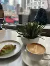 Was in town for a few days and decided to try this place for breakfast since it was so close to where we are staying. You walk in have to scan the QR code order at the counter then they bring to your table for you, We both ordered a breakfast sandwich and coffee I was just a lit surprised they charged me an extra dollar to put it on a bagel rather than the croissant it comes on, but we are in a more expensive city . The sandwich was good, coffee was hot nothing special really but still in all a cute place, nice people, enough seating etc. With eating in you get 1 free refill on your coffee they were nice enough to give it to us in to go cups for our walk