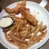 I experienced a new low in dining tonight, thought I’d stop in for a quick dinner. Ordered pomodoro with gnocchi and fish and chips plus coffee. Female Server behind the counter- miserable Front of house staff - friendly and efficient Cappuccino Coffee- luke warm Gnocchi- glue balls Pomodoro sauce- watery (see photos) Fish and chips - fish goujons at best, obviously a problem with the kitchen as the fries were burned outside and undercooked inside. First and last visit- if you are passin by on the way to and from the pier then keep going