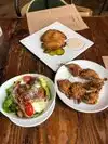 WOW!!!! Very yummy charcuterie platters, excellent buttermilk fried chicken in donuts with a jalapeño syrup. Wow!! Loved it. Service was excellent. In the heart of the market too.