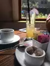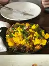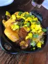 The pumpkin chili was delicious, we also liked the quail legs which is a specialty. Great outdoor tables. Fast service.