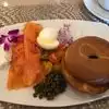 We really liked this place. We both ordered the salmon platter with sooooo much smoked salmon, capers, onions, a wonderful cream cheese for the bagels and heirloom tomatoes. Delicious ! Service was attentive. Coffee, for a change in a restaurant, was bold and flavorful. Nice, easy-going, peaceful setting.
