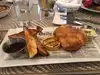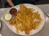We had haddock which was so tender and tasty and quite a large portion. The house Chardonnay was excellent. The DJT burger is fabulous. It must be the meat quality and they grill the bun and assemble it with quality ingredients. Even the lettuce was a stand out great taste.
