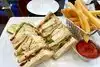 The service was okay. Ordered fish n chips and spicy Chicken sandwich. The sandwich had more coleslaw than spicy chicken with an over sized bread bun. Waiter asked if everything was good, expressed displeasure in the sandwich and he just walked away not sure how to respond. I wouldn’t revisit. The hotels image was beautiful but pass on the food.
