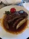 We thoroughly relaxed during dinner here tonight which was nice not to be rushed. I had a delicious French Onion soup with lots of onions and cheese. I also had a Cobb salad which was scrumptious and came with a mustard vinaigrette. My husband had the Bruschetta for an appetizer then, Fish and Chips which was average...maybe would have been happier with a steak but they were pretty expensive and did not come with any sides. Anyway, next time we will try the cheeseburgers! Very comfortable chairs and tables were set with linens.